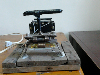 自制熱熔壓片機初級產品制作完成的那天,我們很激動,像迎接一個新生的嬰兒,又像學生答完考卷等待老師的評分。可是,初期的試驗結果卻給我們潑了一盆冷水。自制熱熔壓片機初級產品制出的樣品薄厚不均,透明度差,根本不符合紅外光譜檢驗的要求,在這種情況下,我們沒有灰心,經過進一步的技術討論,發現熱熔壓片機的構型是對試驗結果影響最大的因素。我們自制的熱熔壓片機由下列四部分組成:電源連接部分、控制變壓器、加熱板和成型板。制取薄片樣品時,采用絕緣電線與電源連接,為自制熱熔壓片機供電;通過控制變壓器獲取合適的電壓為加熱板供熱;將樣品置于加熱板上;手壓成型板,與加熱板重合擠壓樣品成型。其中加熱板采用手動壓片的方法,這就是造成實驗失敗的根本原因。